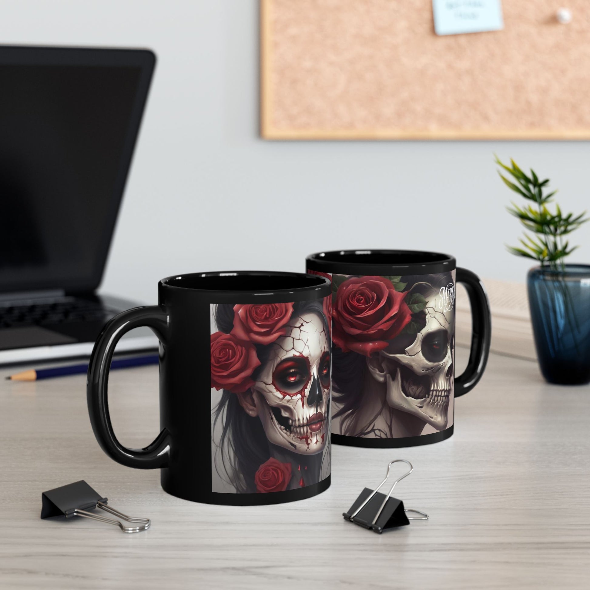 This uniquely designed black mug adds a touch of mystery and intrigue to your daily routine. Perfect for coffee lovers and tea enthusiasts alike, it serves as a bold statement piece while providing ultimate functionality. With a glossy finish and vivid colors, each sip feels like an experience, making it ideal for cozy mornings at home or productive days at the office. Whether you're celebrating a special occasion like Halloween, gifting a friend who appreciates dark fantasy art, or simply indulging in your illicit afternoon tea, this mug enhances any moment. It's perfect for adults who enjoy expressing their unique style through their everyday items.